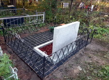 Достаточно оригинальный заказ на классическое оформление места захоронения. Обратившийся к нам клиент пояснил, что ничего не понимаем в оформлении участка своими руками и предоставил фотографии, отражающие состояние могилы во время его ухода за памятниками.
